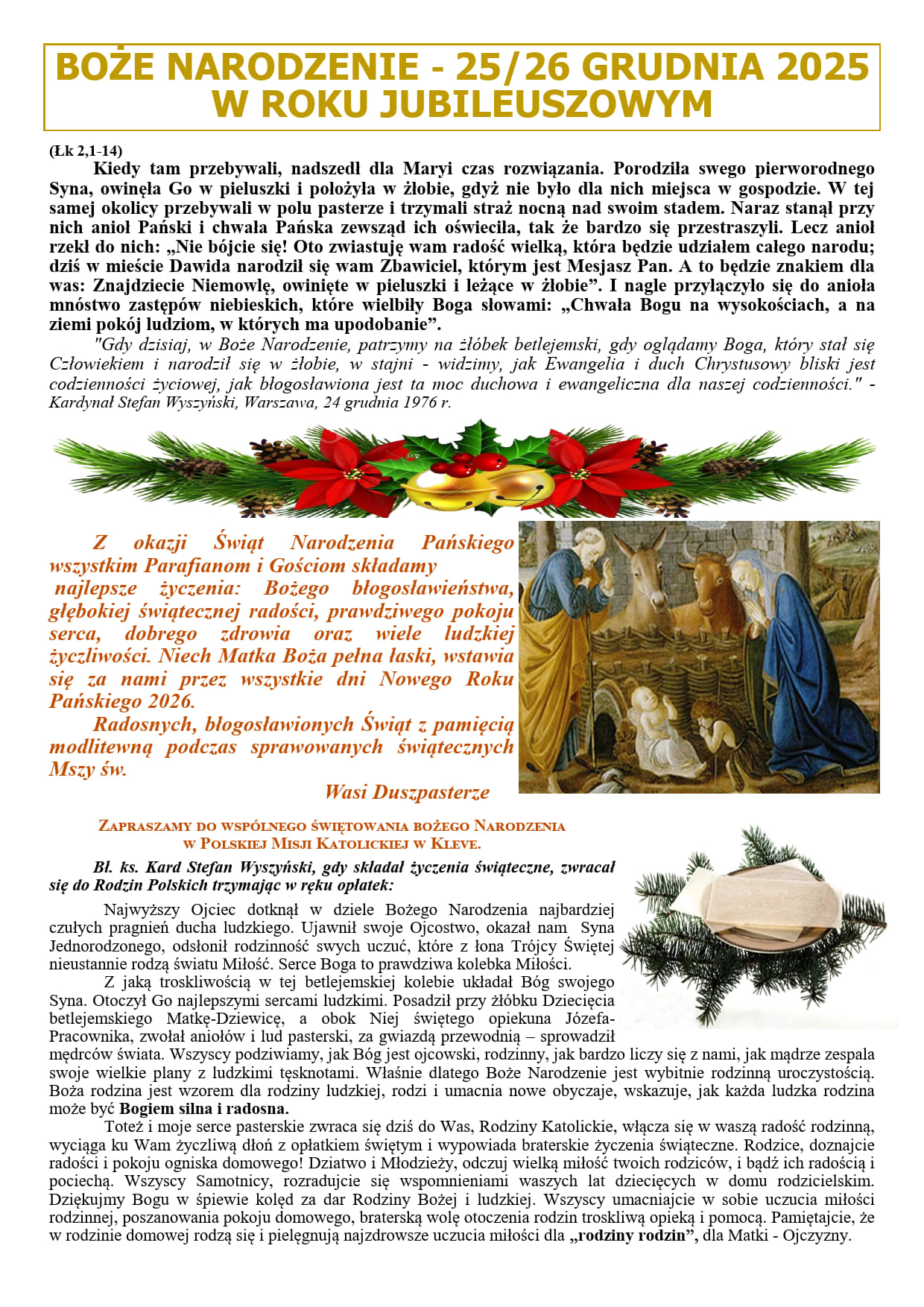 BOŻE NARODZENIE 25/26 GRUDNIA 2025 OGŁOSZENIA PARAFIALNE NR.: 362 – IV NIEDZIELA ADWENTU – 21.12.2025 INTENCJE MSZALNE NR.: 363 – NIEDZIELA ŚWIĘTEJ RODZINY – 28.12.2025