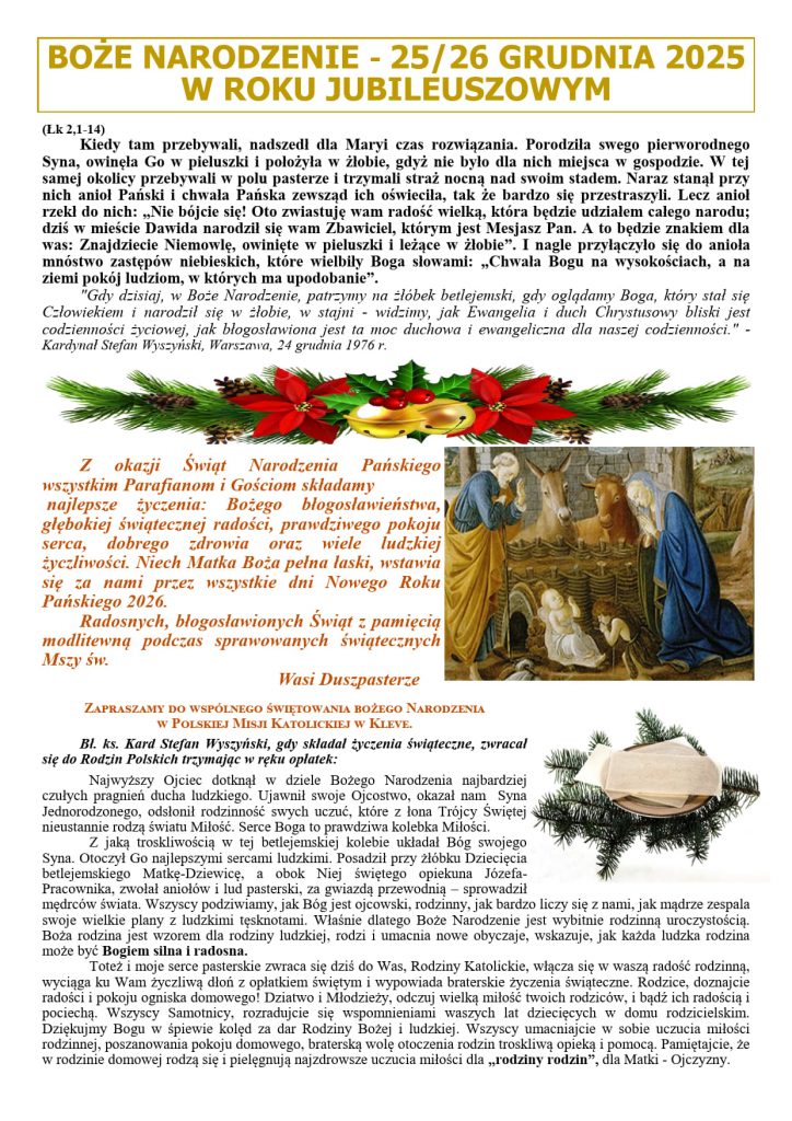 Ogloszenia duszpasterskie nr 362 21.12.2025_4 Full size 1240 × 1754 pixels BOŻE NARODZENIE 25/26 GRUDNIA 2025