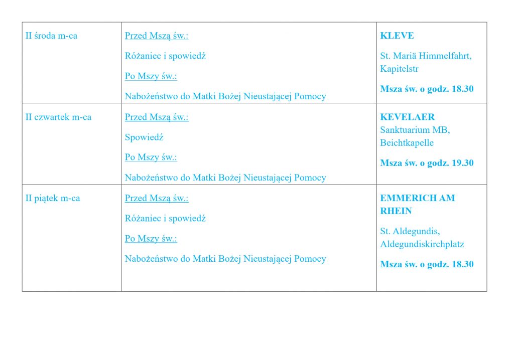 Polska Misja Katolicka - Kleve - Kevelaer - Emmerich am Rhein